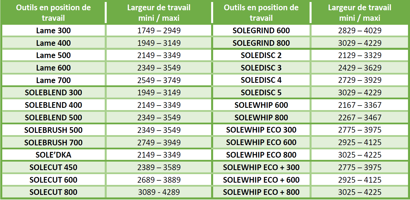 30L / min pour outils motorisés et entre 10 et 20L / min pour les fonctions auxiliaires